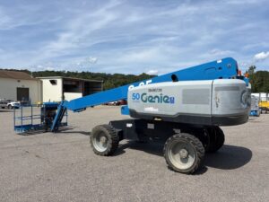 This Genie telescopic boom lift offers excellent horizontal outreach, fast lift speeds, and durable Genie engineering, making it a popular choice for contractors needing reliable high-reach aerial work platforms. The Genie S-65 lift is ideal for roofing, electrical work, commercial construction, and large-scale maintenance projects.