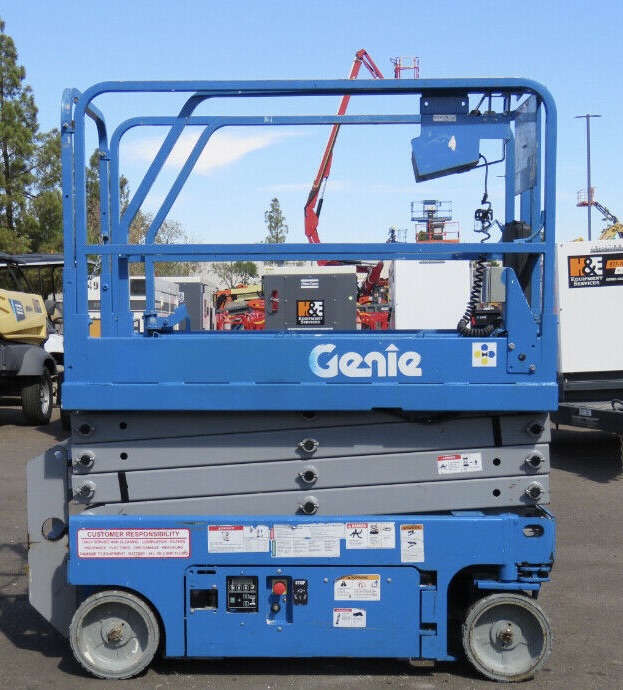 The Genie GS-1930 is a self-propelled electric scissor lift designed for indoor use, particularly in applications where low-level access and maneuverability are essential. With a maximum platform height of around 19 feet (5.79 meters) and a compact design, the GS-1930 is suitable for tasks such as maintenance, installation, and construction within confined spaces. It features a relatively lightweight design, making it easy to transport and set up.