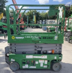 The Genie GS-1930 is a compact electric scissor lift designed for indoor use. With a platform height of around 19 feet, it provides vertical access in environments like warehouses and manufacturing facilities. This scissor lift typically has a capacity of around 500 lbs, features smooth drive controls, and is equipped with non-marking tires for indoor surfaces. The design often includes a fold-down guardrail system and platform extensions for increased workspace.