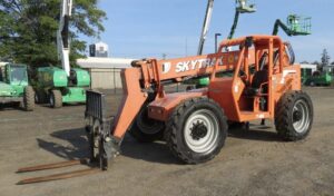 The Skytrak 6036 Telehandler has a lifting capacity of 6,000 pounds and a maximum lift height of 36 feet. SkyTrak telehandlers are commonly used in construction and agriculture for lifting and reaching tasks.